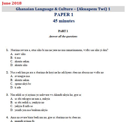 Ghanaian Language and Culture (Akuapem Twi) 2018 Private BECE Past Questions (PDF)