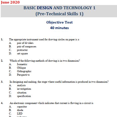 BDT Pre-Technical Skills 2020 BECE Past Questions & Answers – PDF. Both Paper 1 (Objectives) and Paper 2 (Essay / Written).
