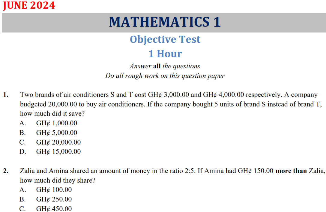 Mathematics 2024 BECE Past Questions and Answers – PDF