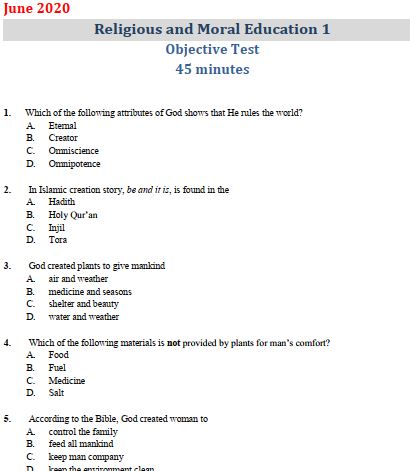Religious & Moral Education (RME) 2020 BECE Past Questions & Answers – PDF. Both Paper 1 (Objectives) and Paper 2 (Essay / Written)