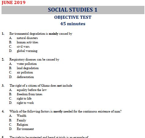 Social Studies 2019 BECE Past Questions and Answers (PDF)